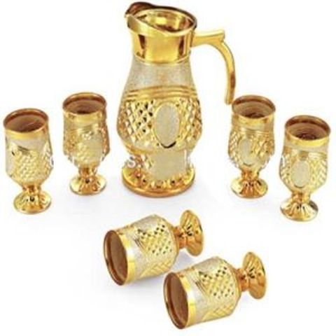 7 Pcs Quality Golden Tableware Serving Juice/Water Glasses Jug Set – Gold