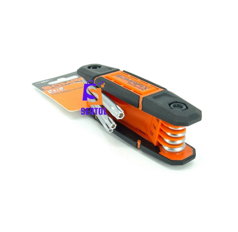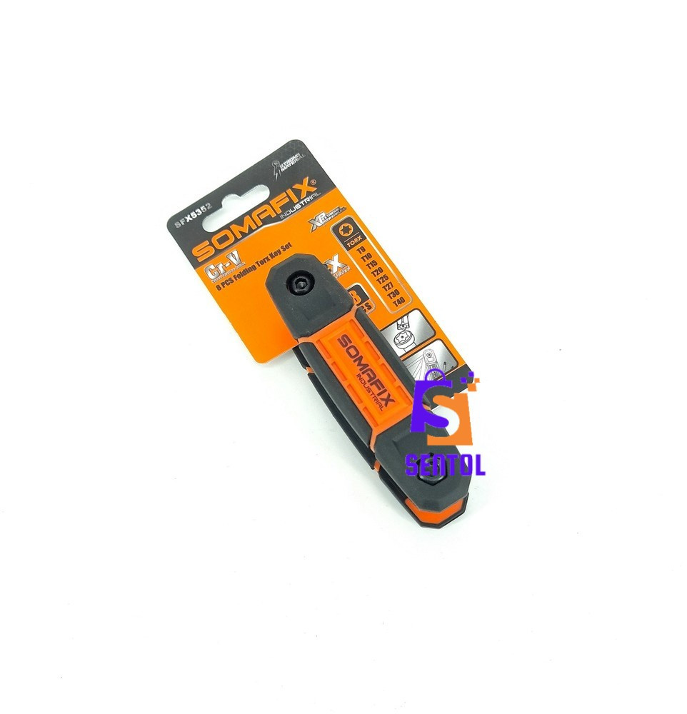 -  8 Tamper-proof folding star key set containing 8 star/torx keys including T-9, T-10, T-15 T-20, T-25, T-27, T-30, and T-40