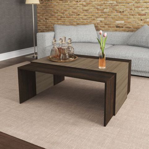 Tecno Mobili Coffee Table, Black-Brown / Almond , 100 X 88 X 42 Cm