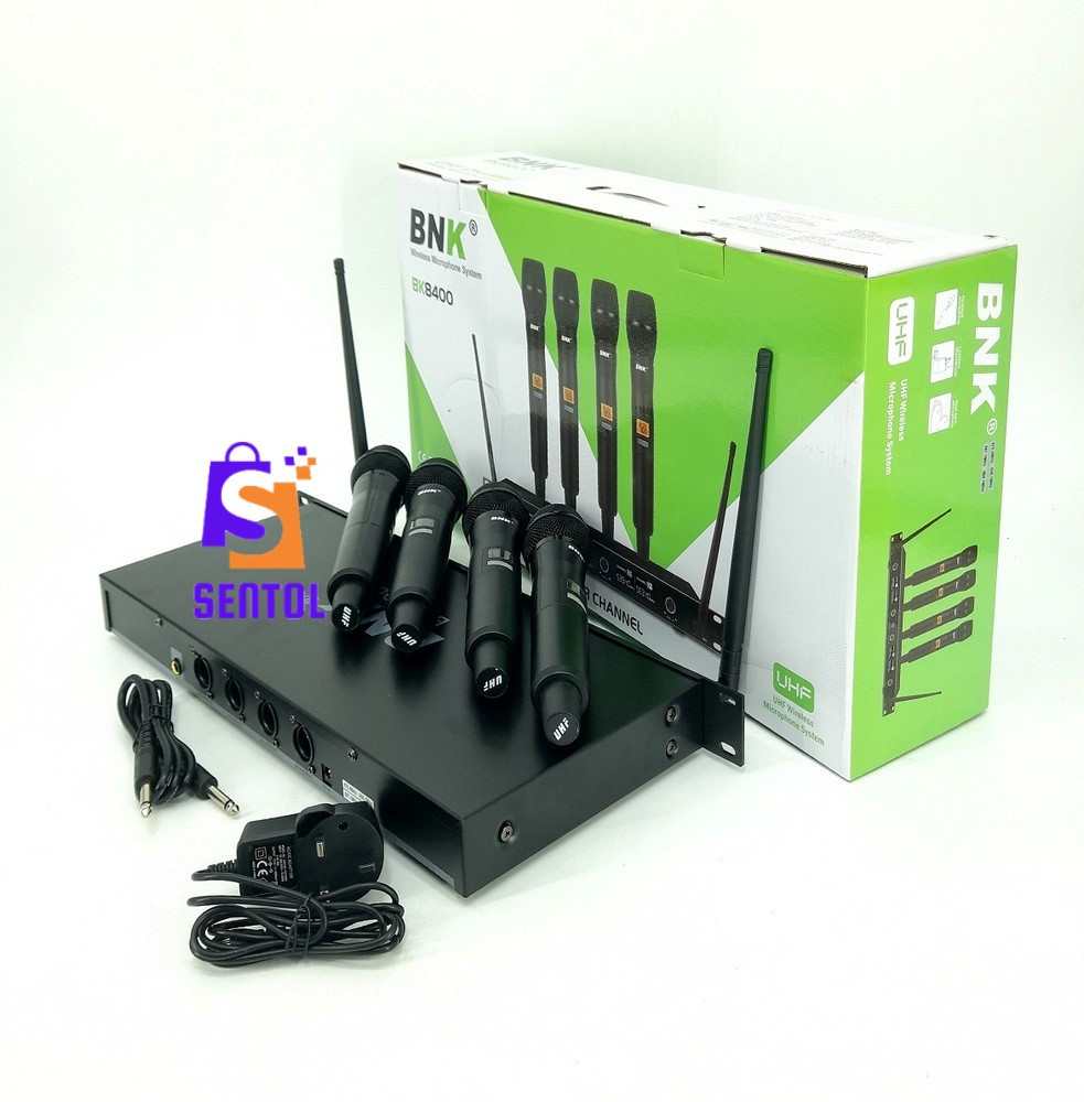 -  4 Channel UHF Wireless Microphone System with 4 Wireless Handheld Microphones