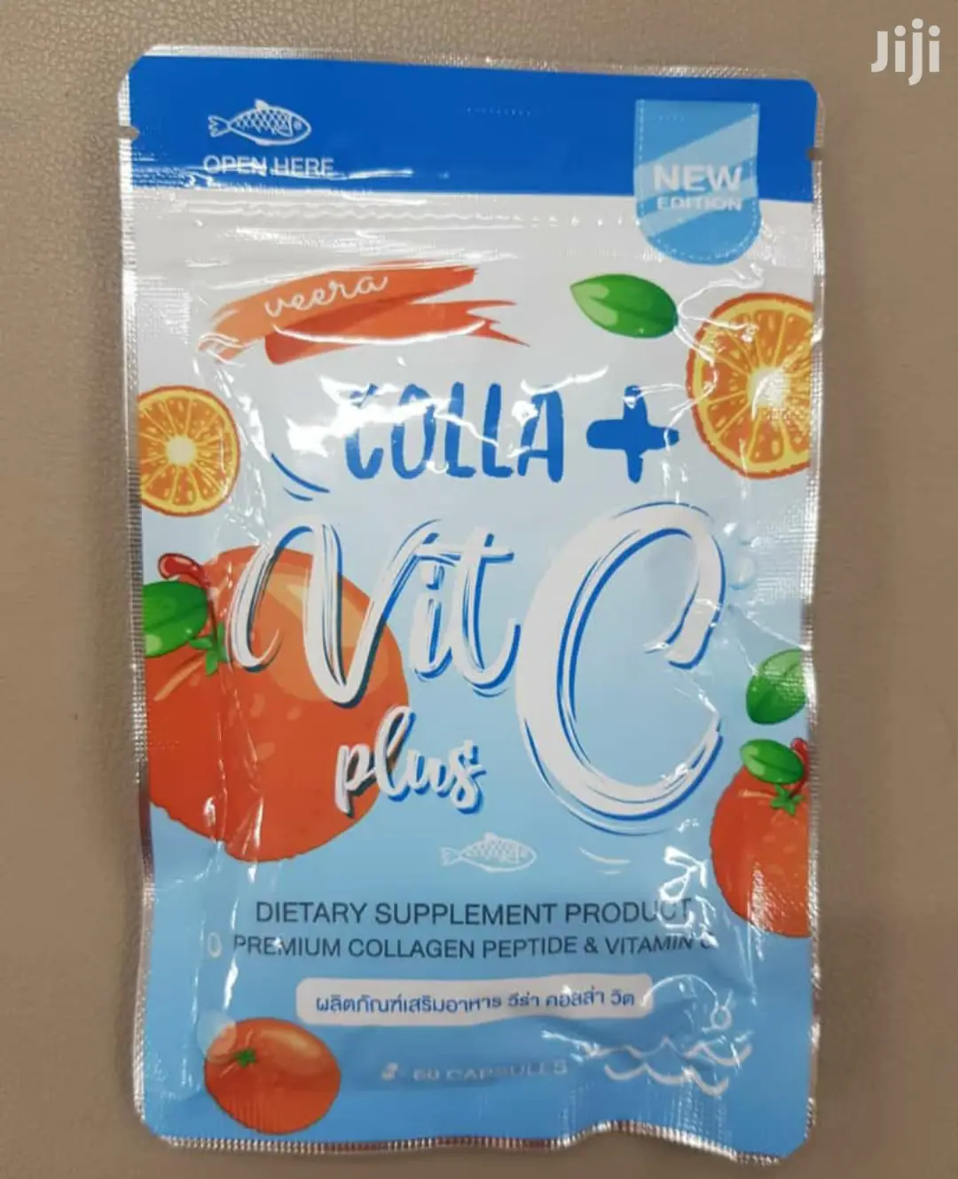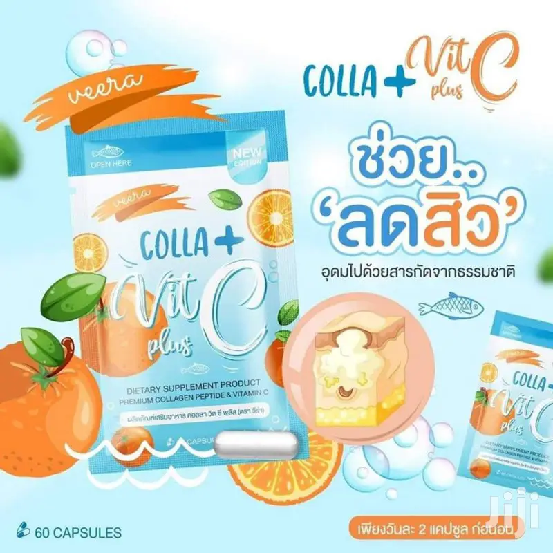 Veera Colla Vit C Plus is the 2 in 1 dietary supplement that combines premium grade extracts for skin care of Collagen imported from Japan and Vitamin C to help reduce dark spots, acne, and wrinkles as well as improve skin to be radiant naturally. It is the best dietary supplement rich in natural extracts, the ultimate for skin care from the inside with high quality in all capsules.
