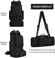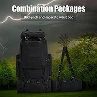 • 【Hiking Backpack and Waist Bag Size】: This waterproof lightweight hiking backpack size 15.35 * 8.66 * 31.49 inches (L x W x H), mountaineering backpack weighs only 3.63 pounds / 1.64 kg, carrying waist bag size 15.74 * 3.93 * 6.69 inches (L x W x H) waist bag only It weighs 0.99 lbs/0.50 kg and will not add burden to your travel.The military tactical bags is suitable for camping, hiking, hunting, camping, climbing. It can replace a suitcase.