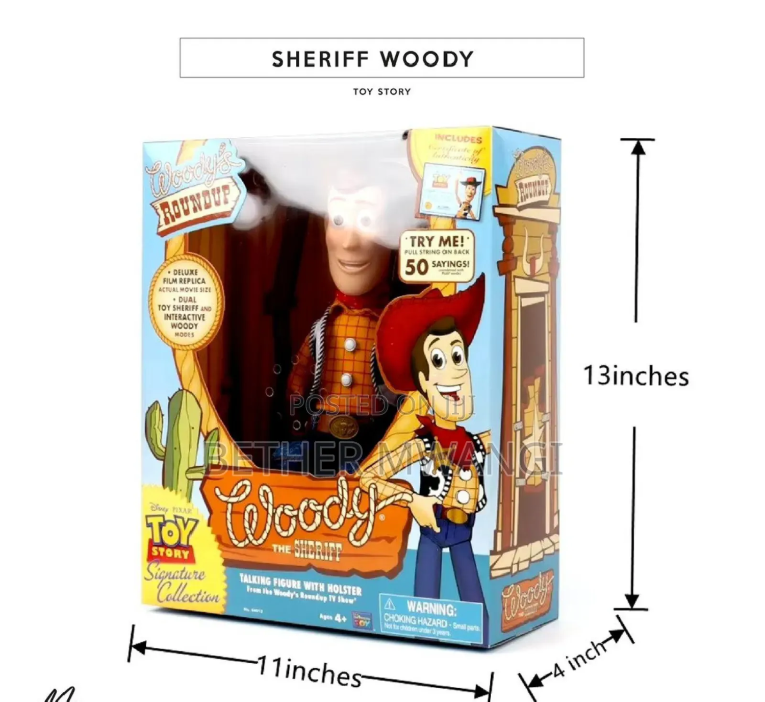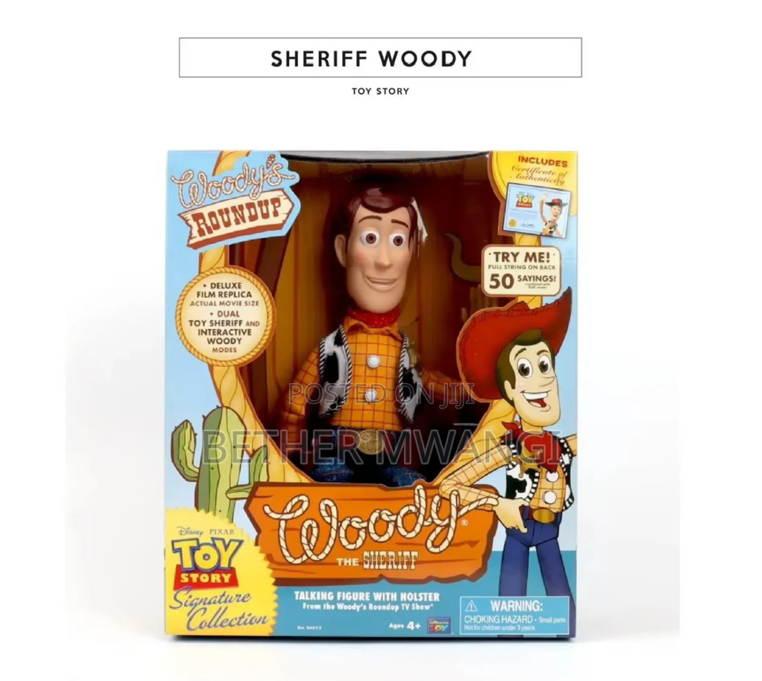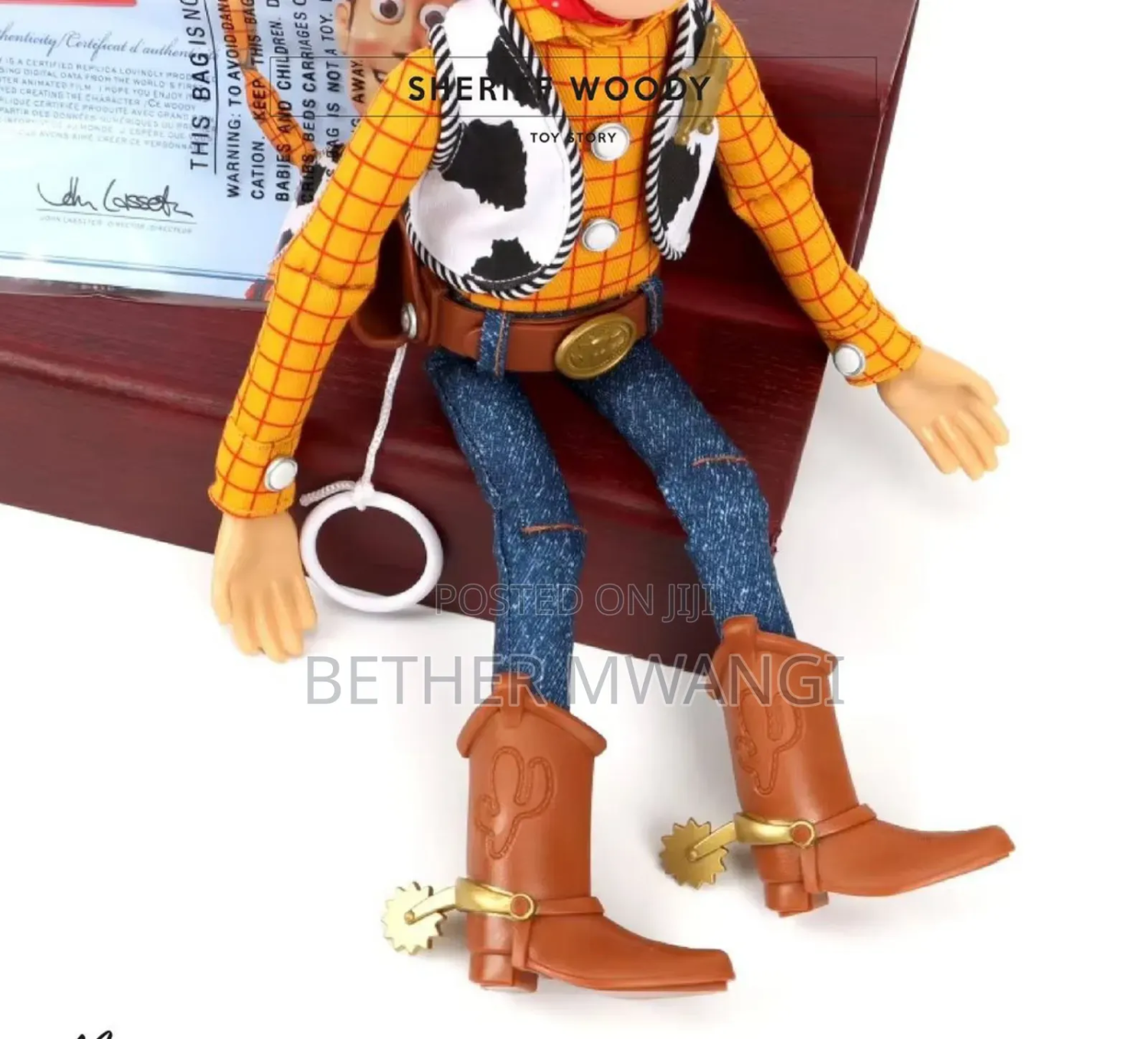 Ring the Magic of Toy Story to Life! Step into the world of Toy Story with this authentic Sheriff Woody action figure. Perfect for kids, collectors, and fans of all ages, Woody is here to join your adventures and bring a little Wild West charm to your day! Features You'll Love: Authentic Design: Faithfully recreated from the Toy Story movies, this Sheriff Woody toy captures every detail, from his stitched yellow plaid shirt and blue jeans to his iconic red bandana and brown cowboy boots. Pull-String Action: Just like in the movies, Woody has a working pull-string on his back that activates his classic phrases, including "Reach for the sky!" and "There'sa snake in my boot!" Posable Limbs: Woody's arms, legs, and head are fully posable, making it easy to recreate your favourite scenes or dream up new ones.