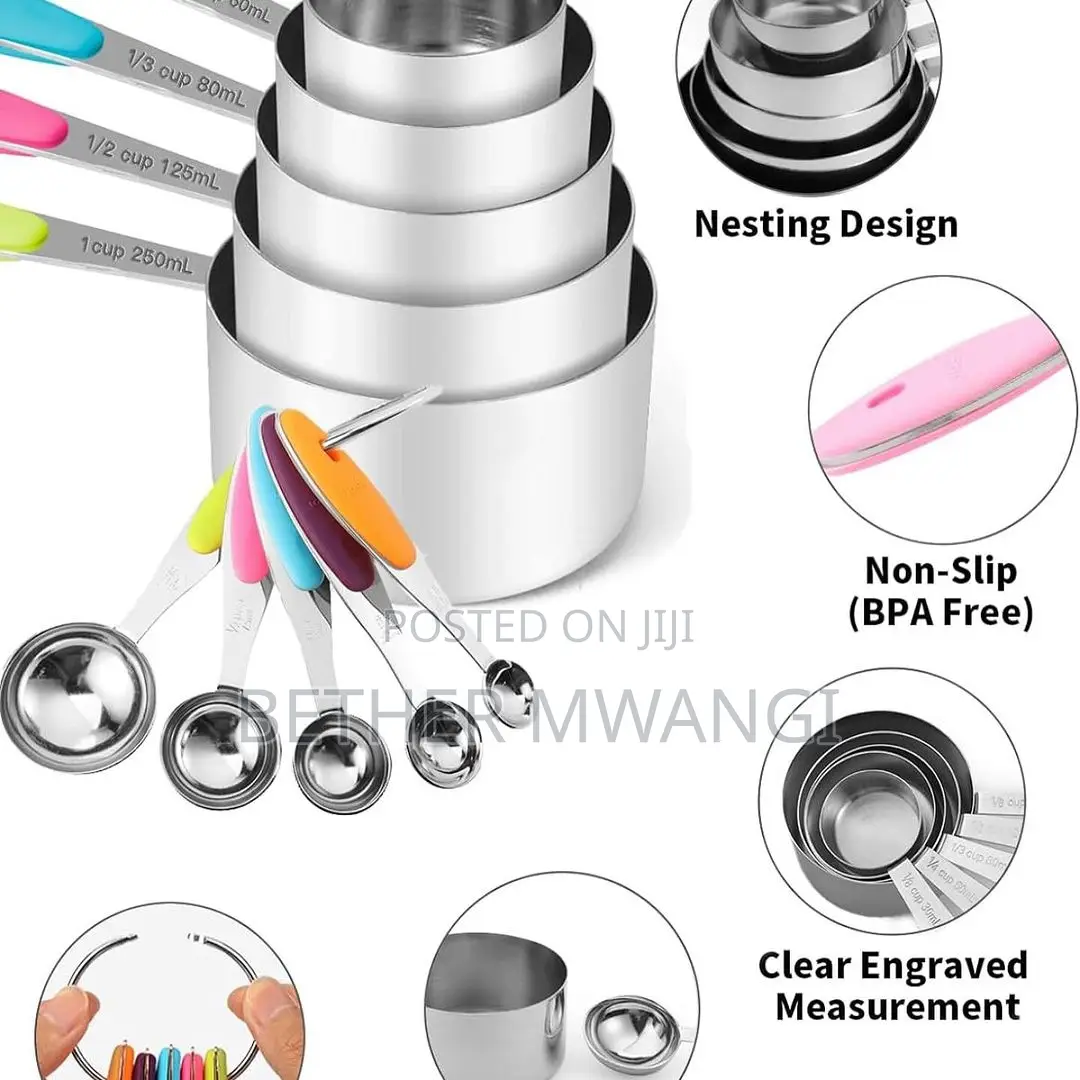 - Complete set of stainless steel measuring cups and spoons