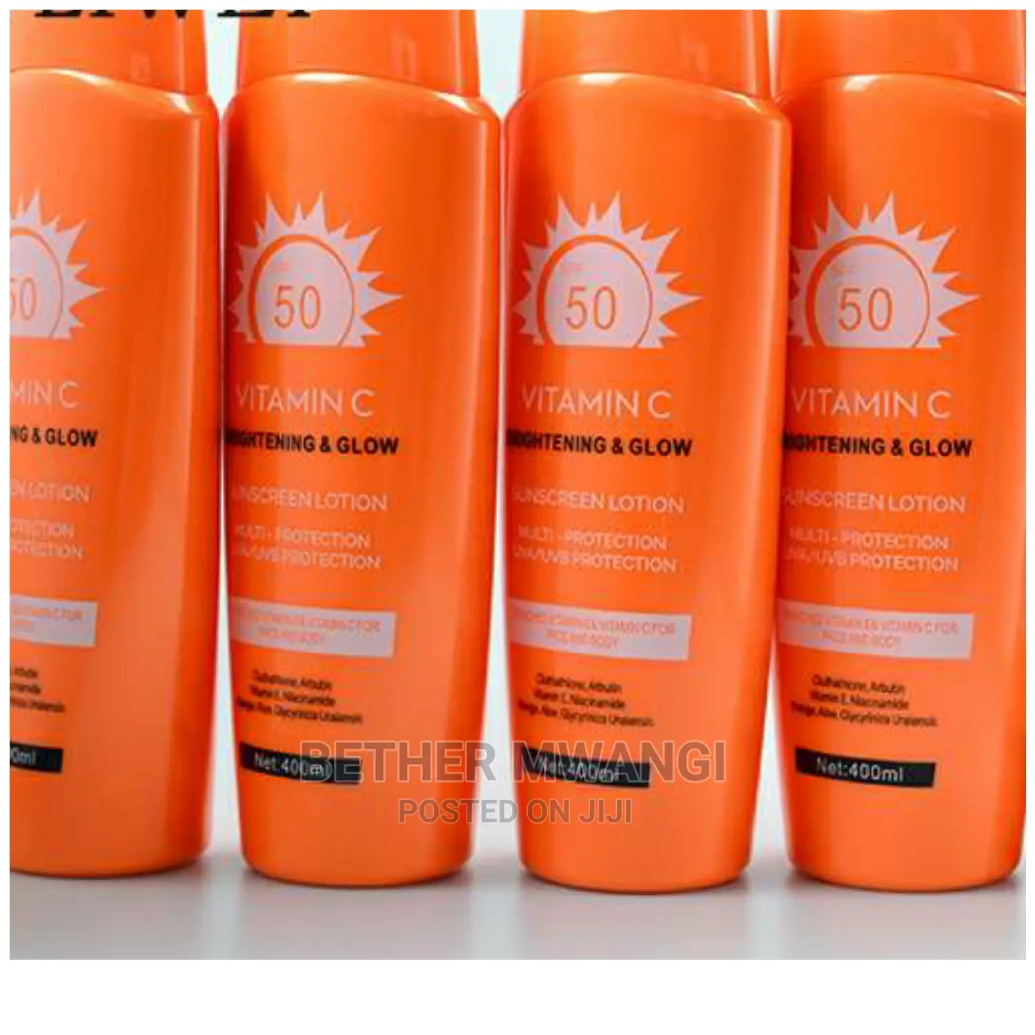 Vitamin c and brightening glow sunscreen lotion (SPF 50). Its mon greasy and it doesn't leave white cast. You can use both on the face and body. In addition it has smoothens and evens the skin tone.