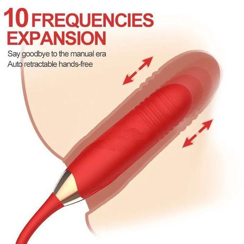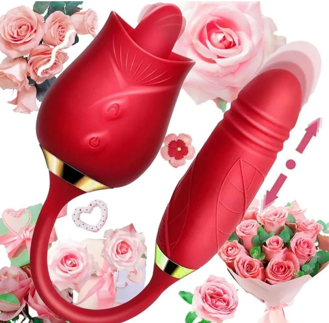 This flower bud rose toy combines with clitoral stimulator & thrusting vibrator, which is an upgraded of the tongue licking version. The rose shaped end features incredible air pulsing suctions to stimulate your or your partner's sweet spots. At the other end is a thrusting dildo G-spot vibrator. Explore 9 suction and 9 thrusting modes and get ready for experiencing passionate pleasure! A fabulous adult sexy rose toy gift for beginners or expert players.