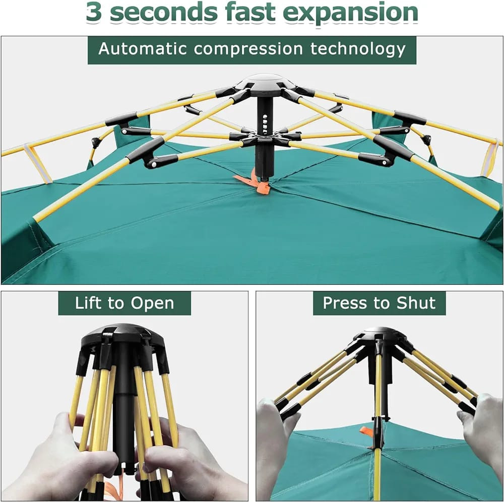 • [Easy and quick construction] :SNSUTY instant pop-up tent, hydraulic system can quickly unfold the tent in three seconds, so that you can set up the tent in 1 minute. Simply lift the top of the tent, pop out the top mechanism, and click the bottom joint into place. Easy to disassemble, saving you time. One person can easily install, easy to enjoy the fun of camping.