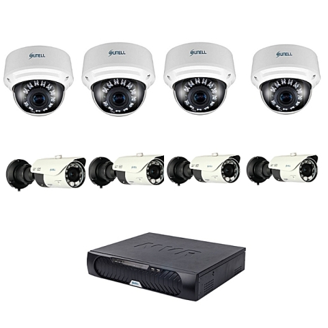 The package consists of 4 4megapixel Dome Cameras 4 2Megapixel Bullet Cameras and a 32 Channel NVR .