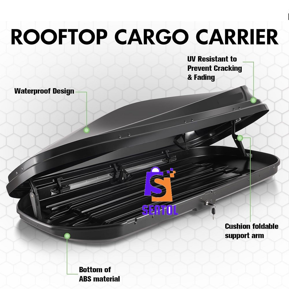 – Black large capacity car top mount travel luggage roof box storage.