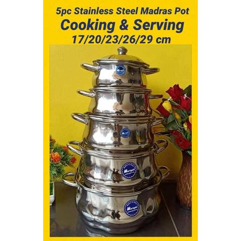 5Pcs stainless steel Madras pot with cover. Ideal for cooking and serving
