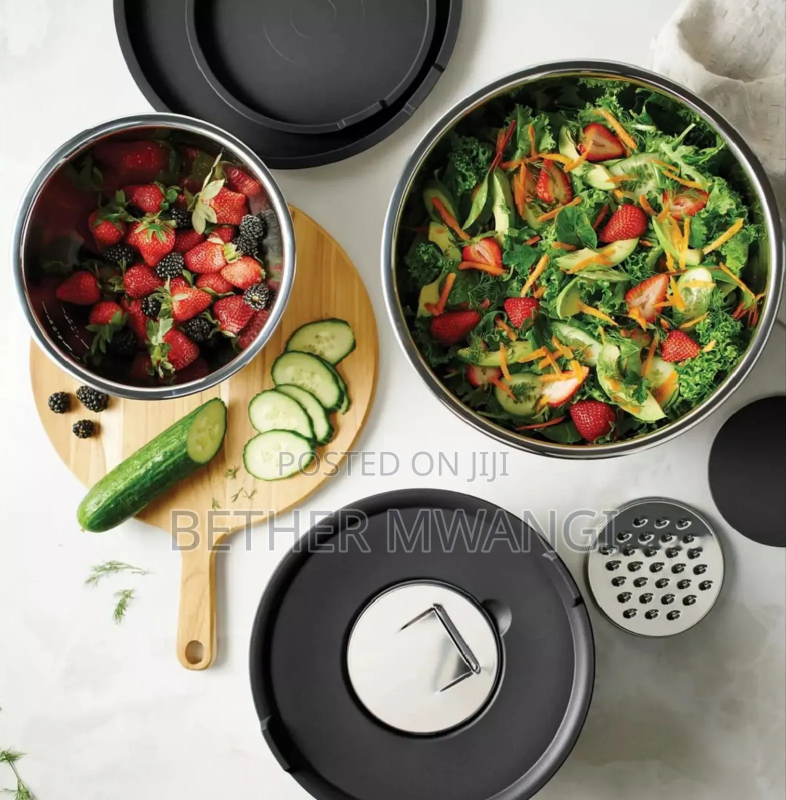 *Set includes 3, 5, and 8-quart mixing bowls with lids, grater, and slicer inserts.