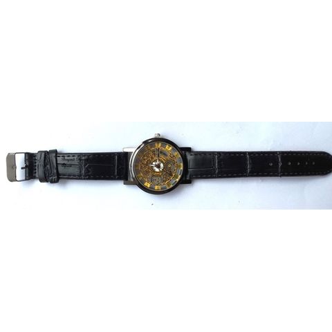 Black Skeleton Leather strap watch