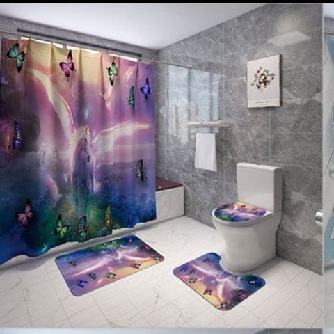 Curtain bathroom mat sets