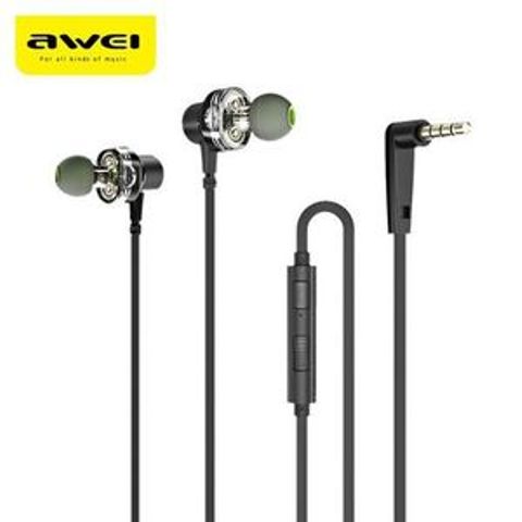 Dual Drivers Wired In-ear Earphone Deep Bass Stereo with Mic - BLACK