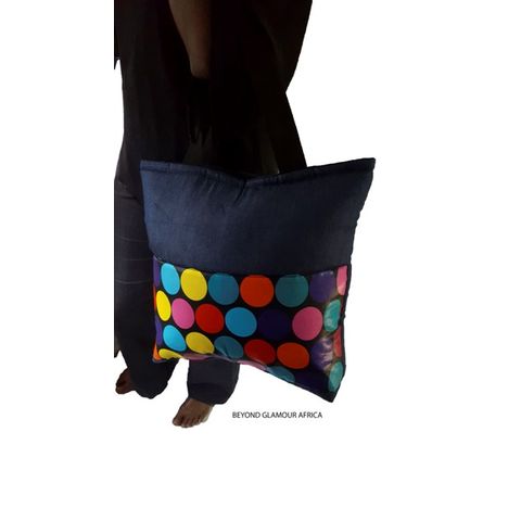 simple and classy shoulder bag .denim blue with ankara print in the front.easy to carry and move around with,spacious enough with material that lasts long