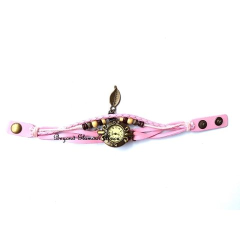 The complementary vintage leaf beads pendant gives the watch an extraordinary look of charm. more than a practical watch, it is also a leather bracelet. charming wrist watch will endear you to anyone who has an eye for classic vintage designs. damp-proof watch with the perfect finishing of multi-layer watch strap, as well as its alloy snap fastener, will enable it to stay fastened and comfortable on you, all-day long. two buttons for adjusting size. total band length is 21.5cm; minimum perimeter: 16cm; maximum perimeter: 17cm.