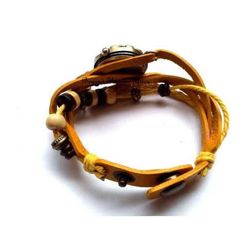 The complementary vintage leaf beads pendant gives the watch an extraordinary look of charm. More than a practical watch, it is also a leather bracelet. Charming wrist watch will endear you to anyone who has an eye for classic vintage designs. Damp-proof watch with the perfect finishing of multi-layer watch strap, as well as its alloy snap fastener, will enable it to stay fastened and comfortable on you, all-day long. Two buttons for adjusting size. Total band length is 21.5cm; Minimum perimeter: 16cm; Maximum perimeter: 17cm.