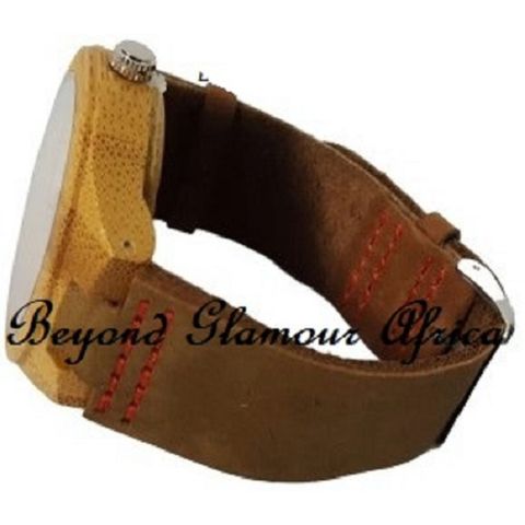 Each watch is made from real sandal wood and cones with a unique  wood grain.It has a genuine  leather strap for maximum comfort