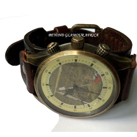 Genuine leather band watch with buckle closure . multifunctional watch with stopwatch functionality, three step dials to track hours, minutes and seconds