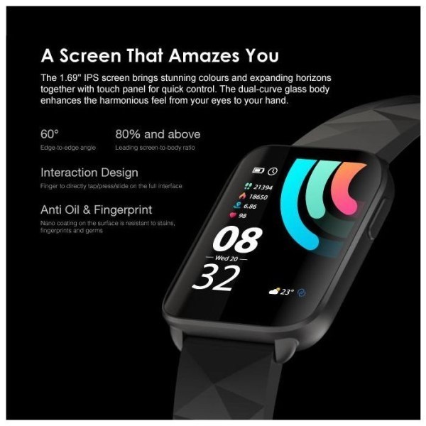 Oraimo Smart Watch OSW-16 - Slim Design - Black