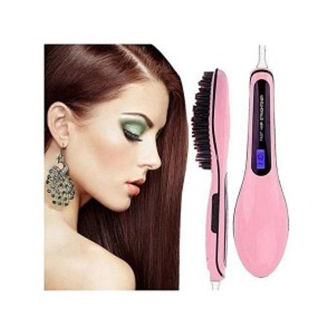 Professional Hair Straightener Comb Brush LCD Display Electric Heating Irons-Pink