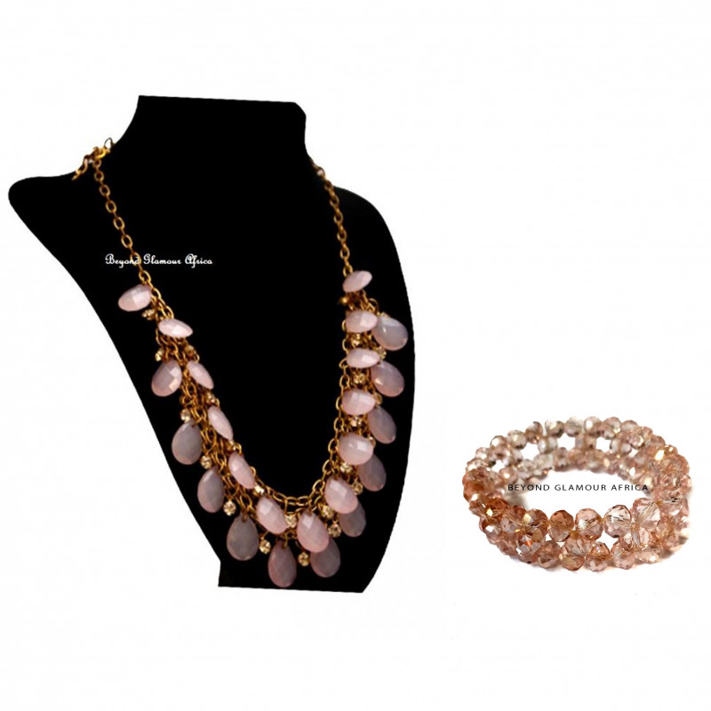 Classic pink jewelry set. Made with small crystal beads that overlaps on each other to bring out a a classy design, blends well with other colors and outfit designs.