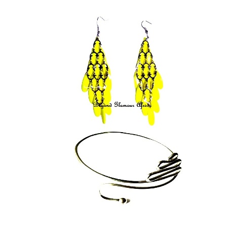 Womens Yellow Crystal earrings with armlet
