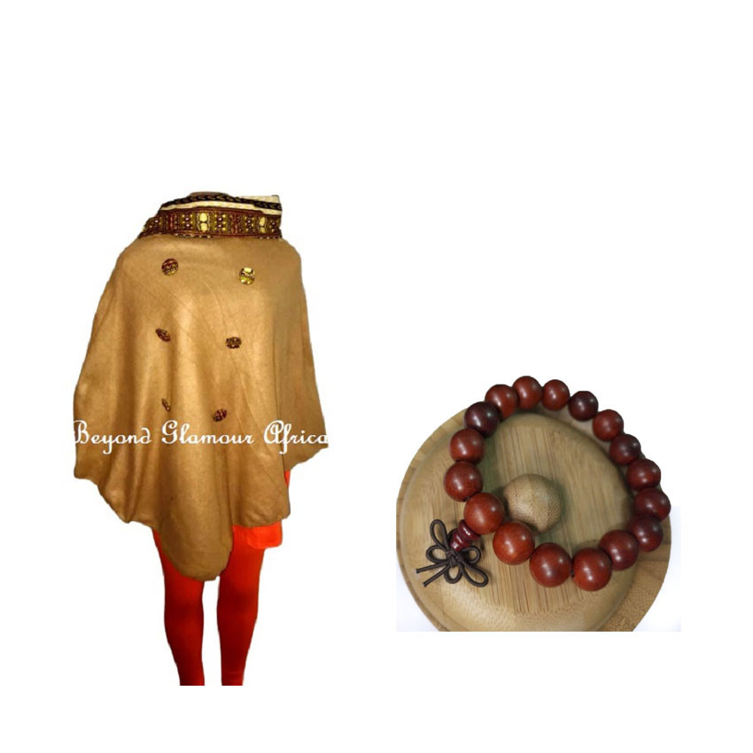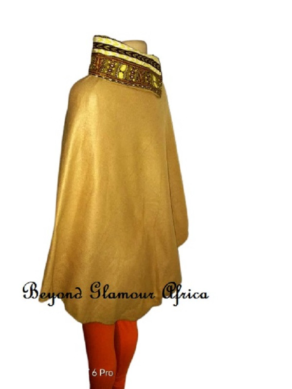 Poncho with a folded high neck.,the poncho is made of soft cotton to keep you warm and comfortable,its one size hence fits all body types,it goes well with all outfits colors and design,stay trendy.comes with wooden bracelet