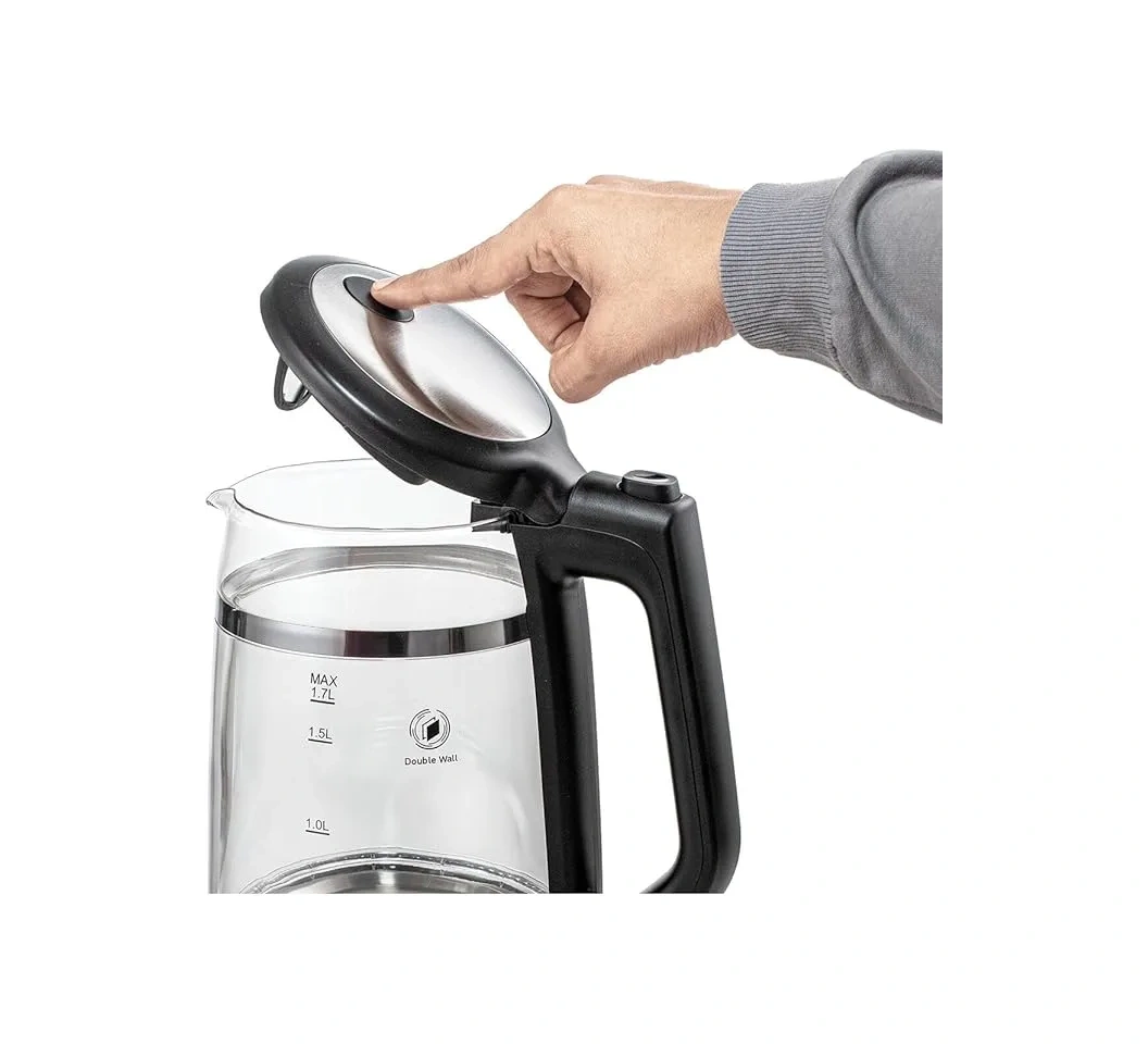 • 1.7L Double Wall Glass Kettle with premium stainless-steel finish for durability