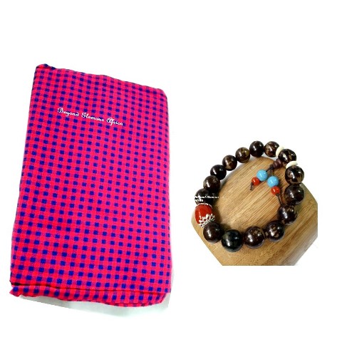 Blue /Pink maasai shuka with shamballa wooden bracelet