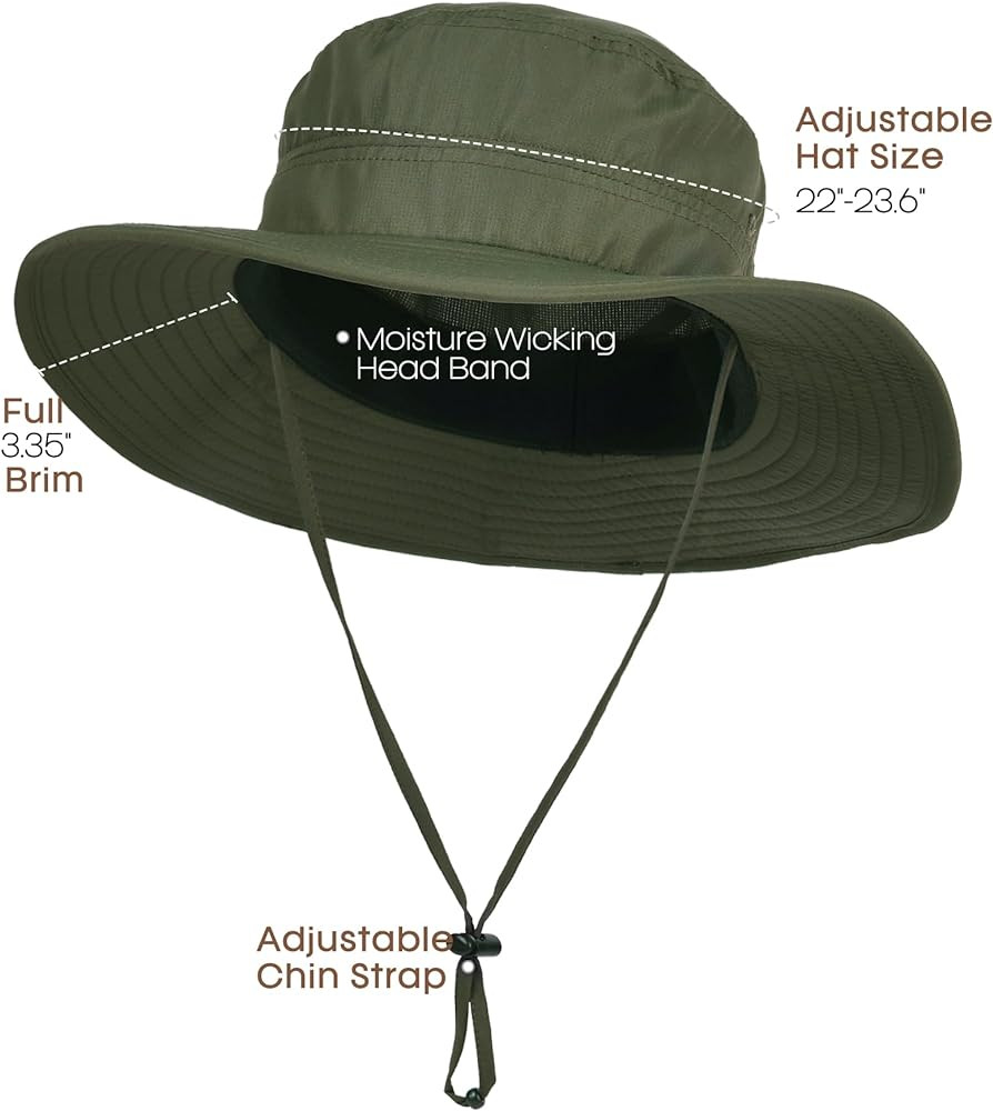 • Adjustable Chin Drawstring: This boonie hat is equipped with an adjustable chin drawstring to hold the hat in place on windy days and to ensure a secure fit.