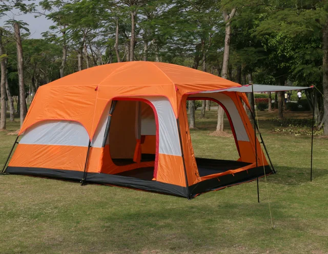 • Unique design: 2 Bay-Windows with Mesh,3 doors 3 Windows with mesh,divided into two rooms by separation curtain.and more comfortable. If the door curtain supports by two poles, it becomes a sunshade canopy.