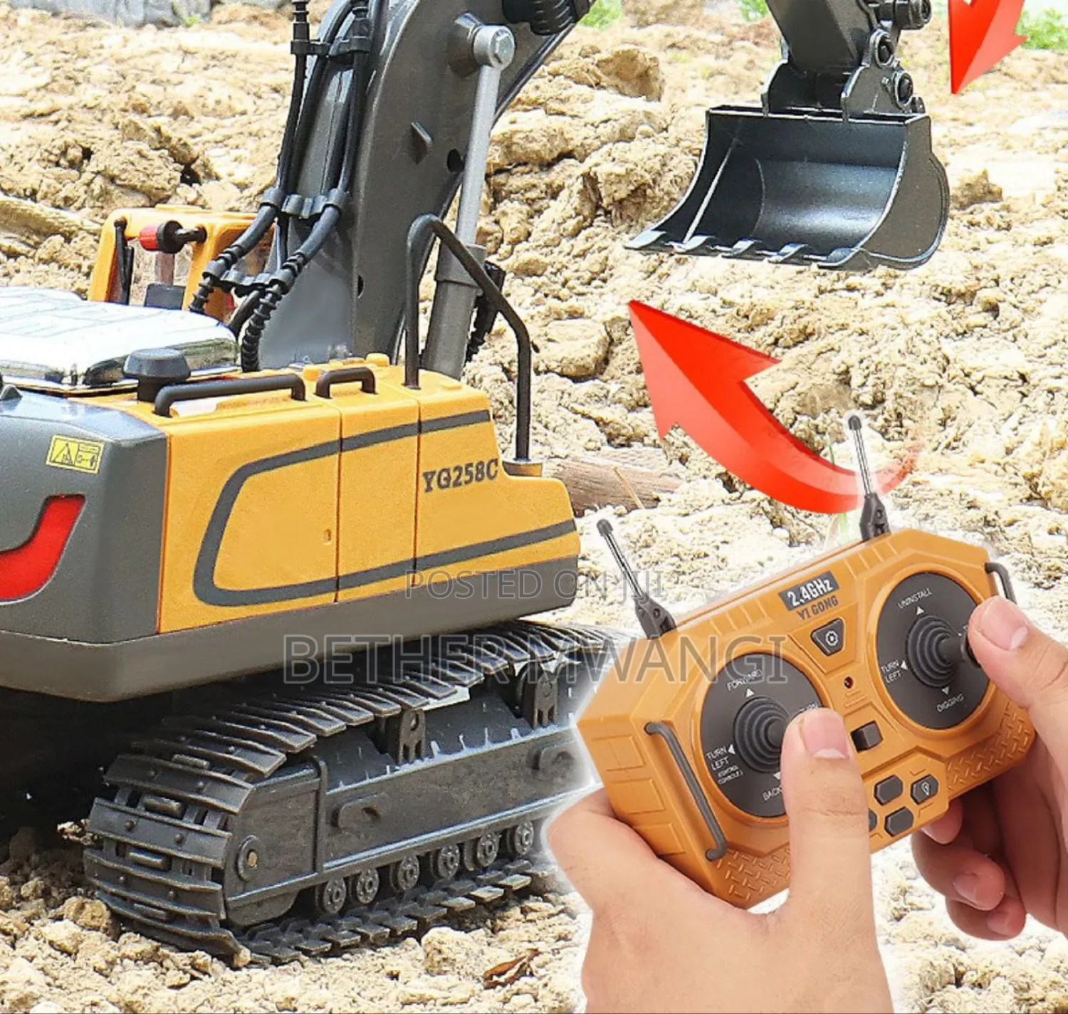 2.4Ghz Flexible Remote Control: 2.4 GHz channel will not interference with other remote control excavator toys. Kids can play multiple rc vehicles together with superior experience. Excellent for role playing games and for sandpits. Powerful Performance, More Fun: With rubber tracks and metal shovel, the excavator goes forward/ backward, turn left/right, digs and moves loose sand, rotates in situ and cab turns 680-degree (340-degree each direction). Outdoor Sand Toys for Toddlers: Little engineers can spend hours driving their digger toys around the beach or yard. Scoop, transfer and dump sand on their very own construction site! Remote control toy excavators model set for kids ages 6-14, which simulation design with ABS material that can completely keep children busy and entertained for hours!