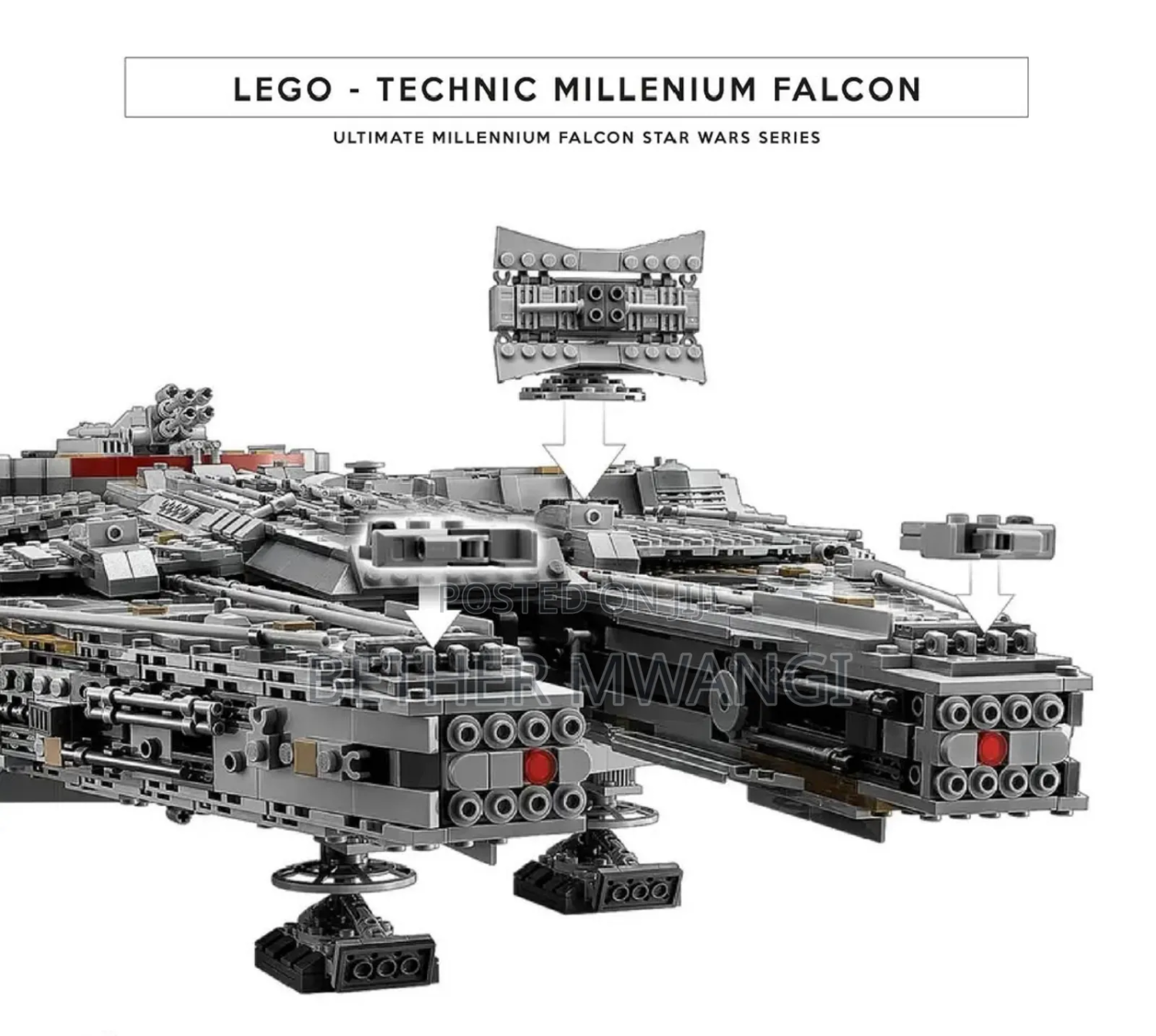 The LEGO Ultimate Collector's Series (UCS) Millennium Falcon (75192) is one of the most complex LEGO Star Wars sets ever produced, featuring 7,541 pieces and measuring over 33 inches (84 cm) long. To accurately replicate Han Solo's iconic ship, LEGO designers employed advanced building techniques that ensure structural integrity, intricate detailing, and movie-accurate shaping. Since the Falcon is a massive set, its internal structure relies on a Technic beam framework to prevent sagging and warping. Technic beams (11L, 15L, and modular connectors) form a rigid grid. Cross-bracing with axle-pin connections ensures stability across large sections. Modular sub-assemblies allow the ship to be built in sections (cockpit, mandibles, main hull, engine bay).