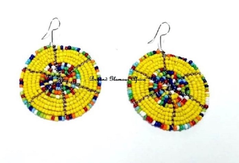 Womens Yellow beaded maasai earrings