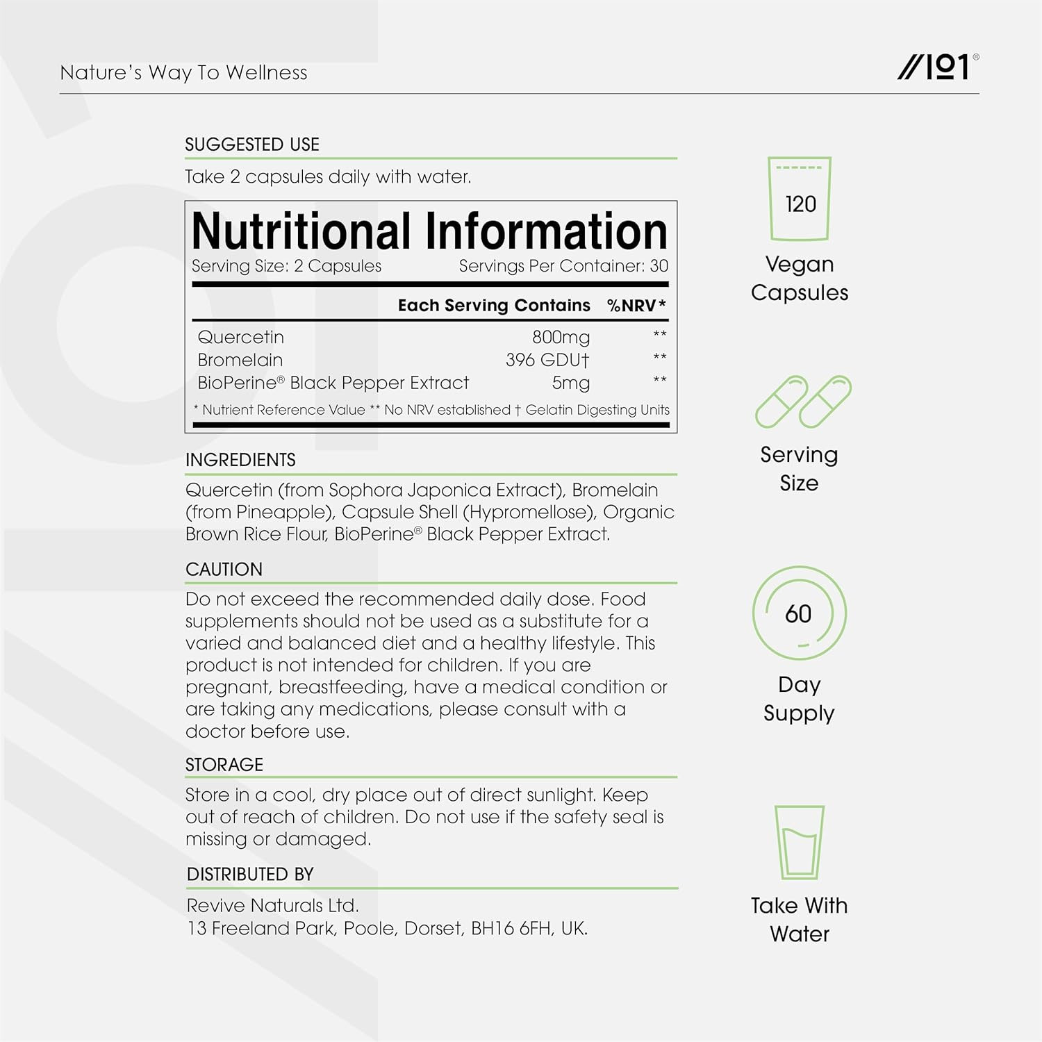 Plant-Based Quercetin 800mg & Bromelain 396 GDU with BioPerine® - 120 Vegan Capsules