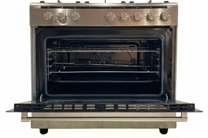 Designed with five powerful gas burners and a spacious 90X60 hob, this cooker ensures even heat distribution thanks to its innovative pool burners, helping you save on gas while cooking perfectly. The built-in mechanical timer offers precise cooking control, while the oven lamp lets you monitor your meals without opening the door. With features like an integrated ignition for match-free lighting, a glass top lid to prevent spills, and a gas leak sensor for safety, this stove elevates your cooking experience. Plus, the turbo fan circulates heat for faster cooking, and with the included oven tray and grid, you can easily prepare delicious roasts, including perfectly golden chicken on the rotisserie.