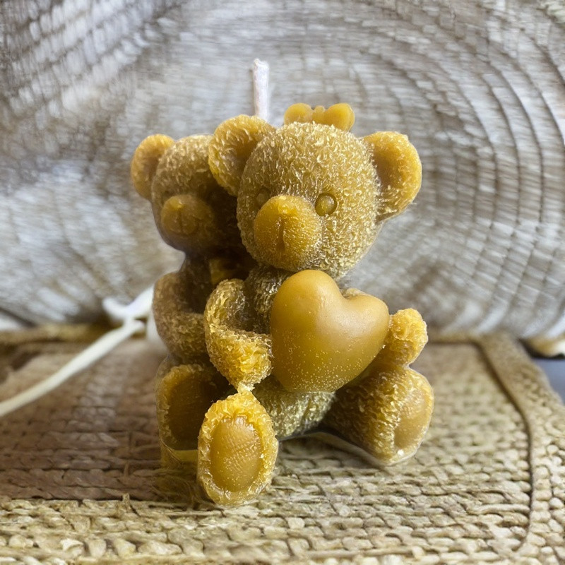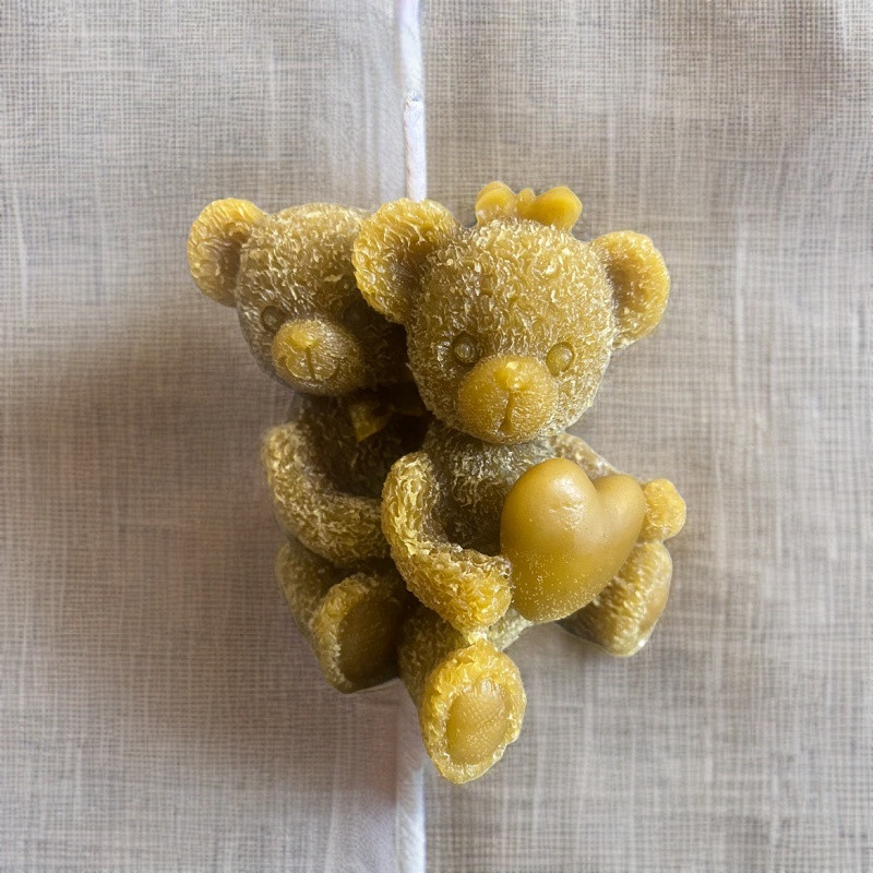 This adorable candle features two teddies hugging, offering both warmth and charm. Crafted from beeswax, it has a natural honey fragrance or can be infused with our special scents for a personalized touch. The cute design is perfect for children’s rooms or as a heartfelt gift. Beeswax is renowned for its ability to purify the air, and this playful candle adds a unique, eco-friendly accent to any space.