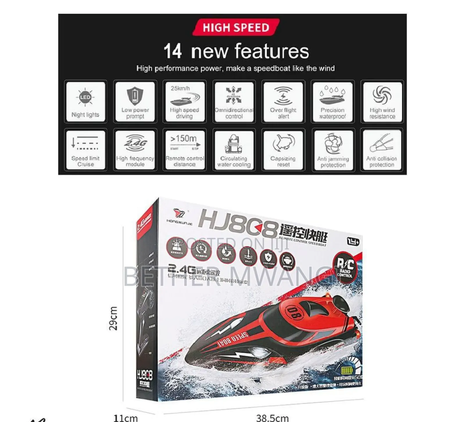 Fully feature rc boat: fine tuning buttons for precise movement, auto yaw correction, water-cooling system, easy pairing, fully waterproof, capsize recovery feature that brings the boat back upright if it capsizes. high speed rc boat: this remote control boat with a maximum speed of up to 25km/hr puts all other boats to shame when it comes to pool or lake races. race multiple rc boats with no interference using the 4 channel speed boat remote control. easy to control: the 2.4g remote control system has a control range up to 150 meters and enables multiple players complete without interferernce. move in all directions and perform crazy 180 degree flips with the remote controller. the controller is fitted with 4 aa batteries that keeps racing boat cruising endlessly. low battery warning.
