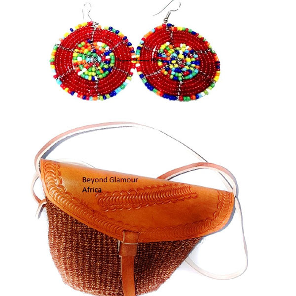Womens Brown kiondo with maasai earrings