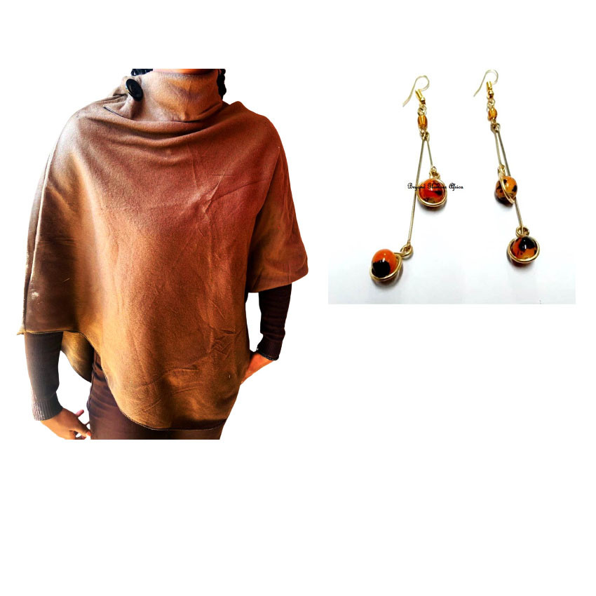 brown Print poncho , a high neck with chunky buttons,the poncho is made of soft cotton to keep you warm and comfortable,its one size hence fits all body types,it goes well with all outfits colors and design,stay trendy