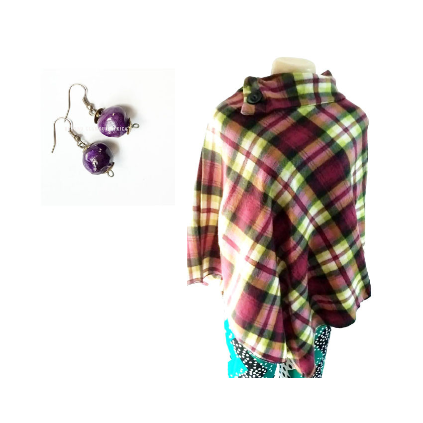 Print poncho , a high neck with chunky buttons,the poncho is made of soft cotton to keep you warm and comfortable,its one size hence fits all body types,it goes well with all outfits colors and design,stay trendy