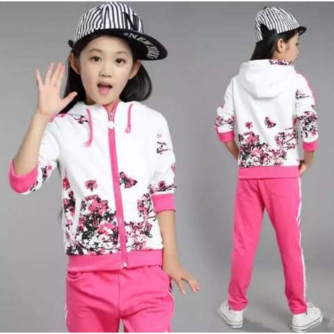 2 pieces Set Floral Print Kids Outdoor Track Suit