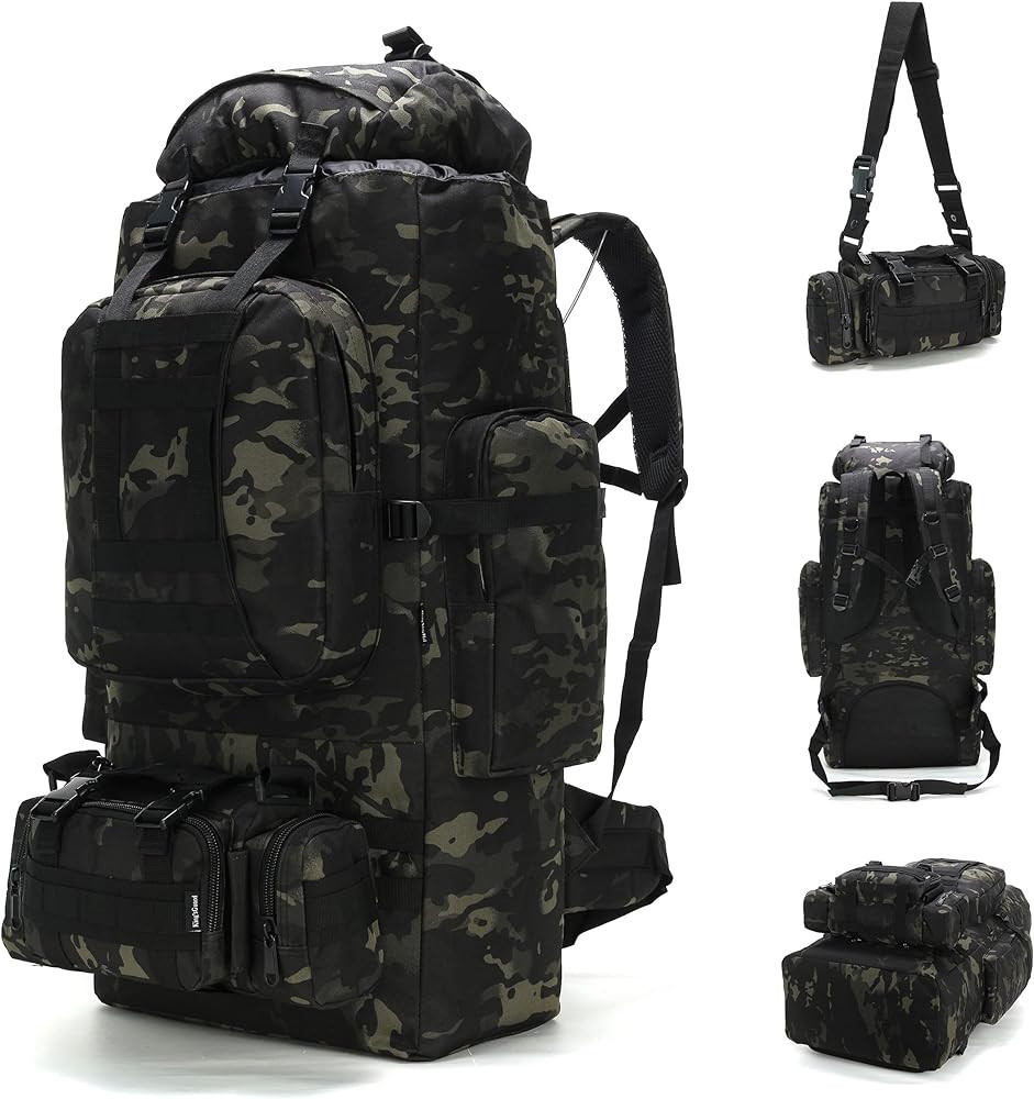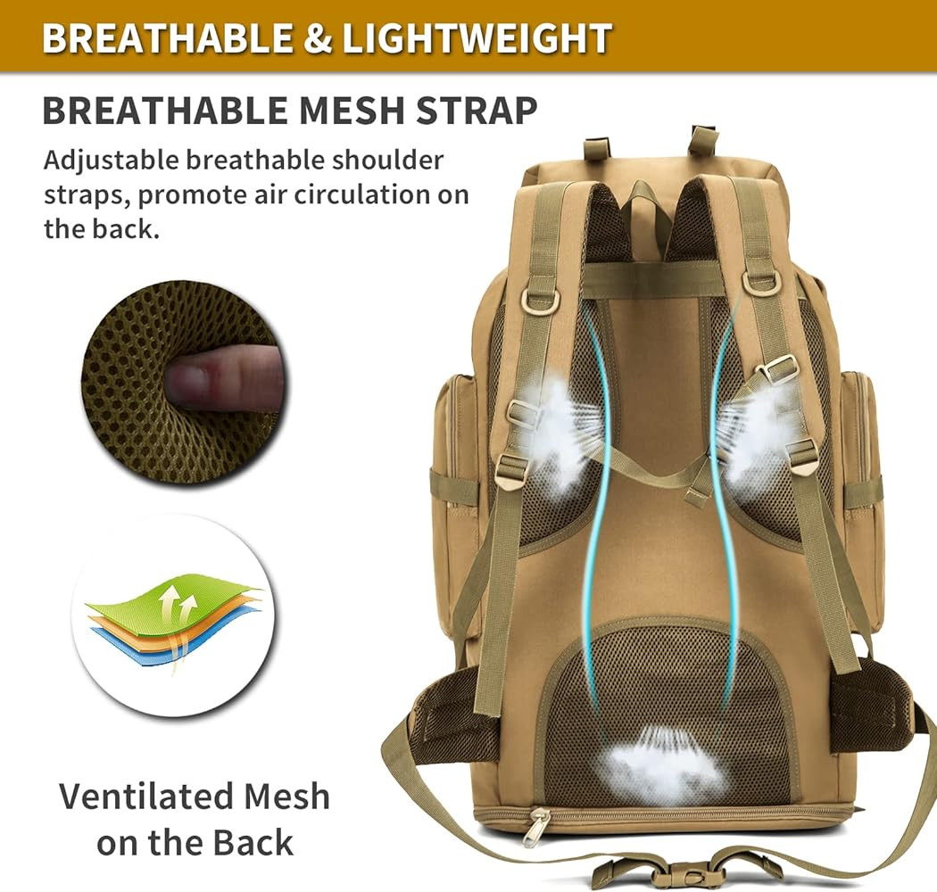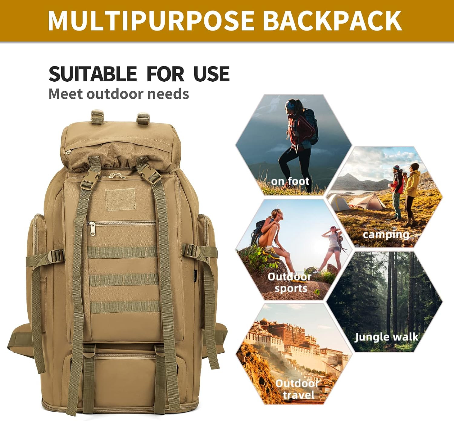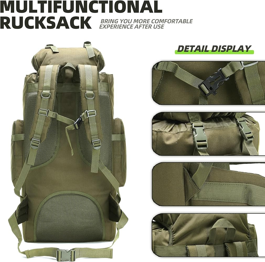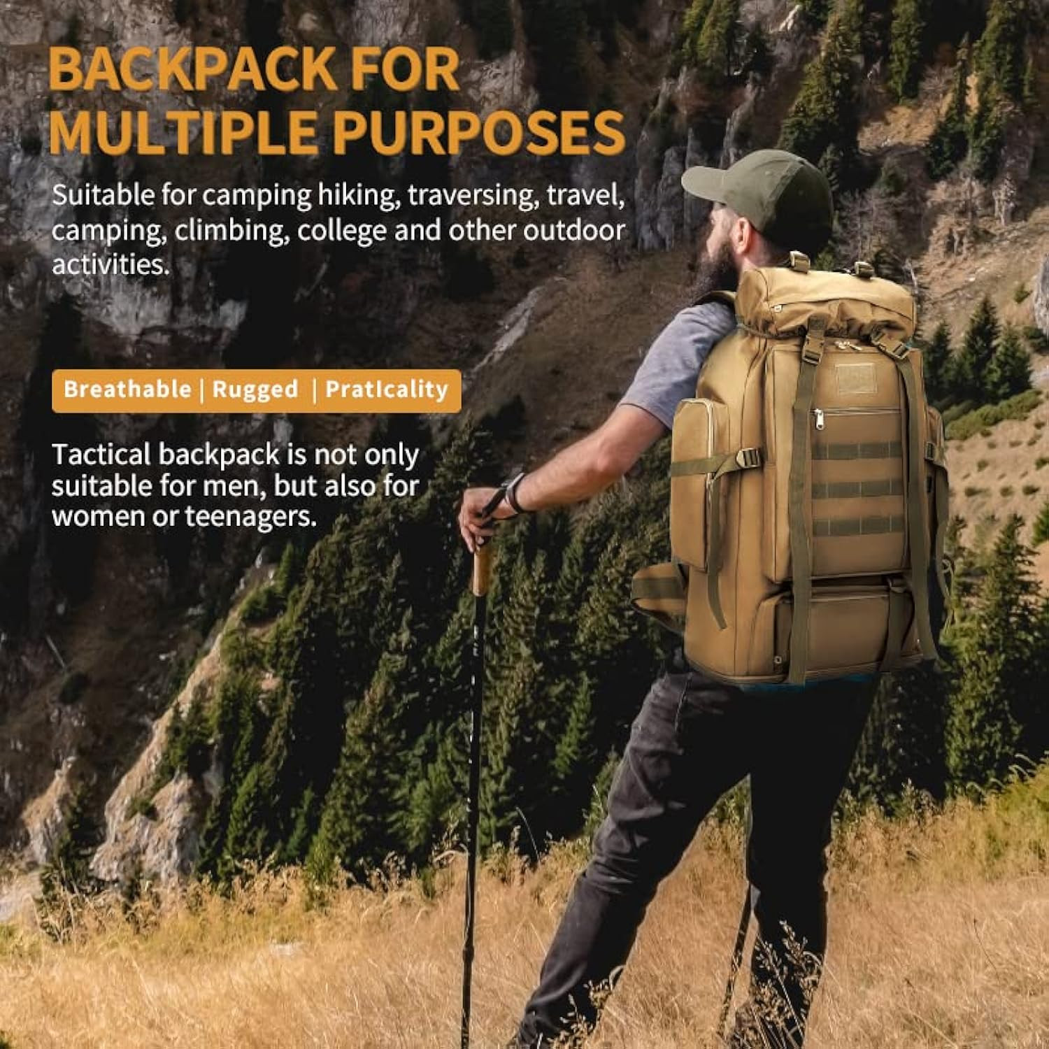 【Large Capacity and Multi Compartment】The Ogetok 100L large capacity camping backpack, The main storage bag has an elastic drawstring, which can expand the backpack, and has a built-in compartment, which is enough to hold a lot of large supplies.