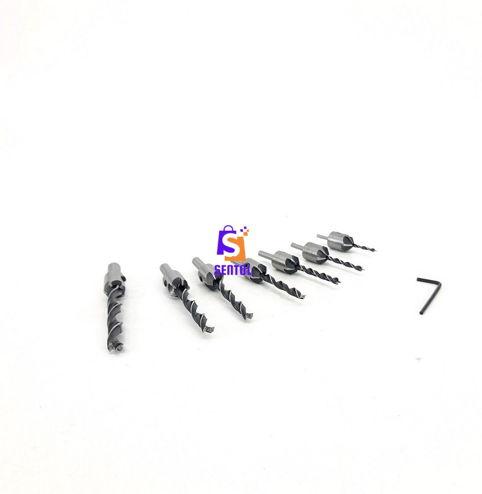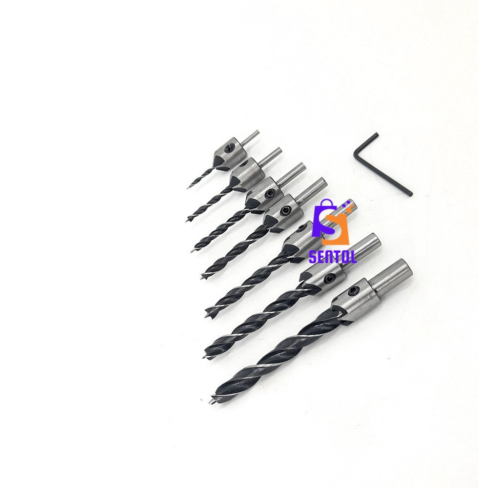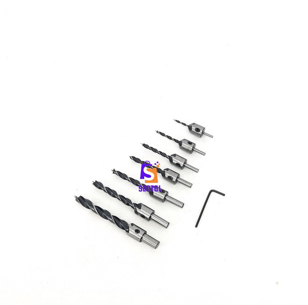 - A set of 7 countersink drill bit combinations size in φ shank 3 mm, 4 mm, 5 mm, 6 mm, 7 mm, 8 mm, 10 mm and 1 Free Hex Key Wrench