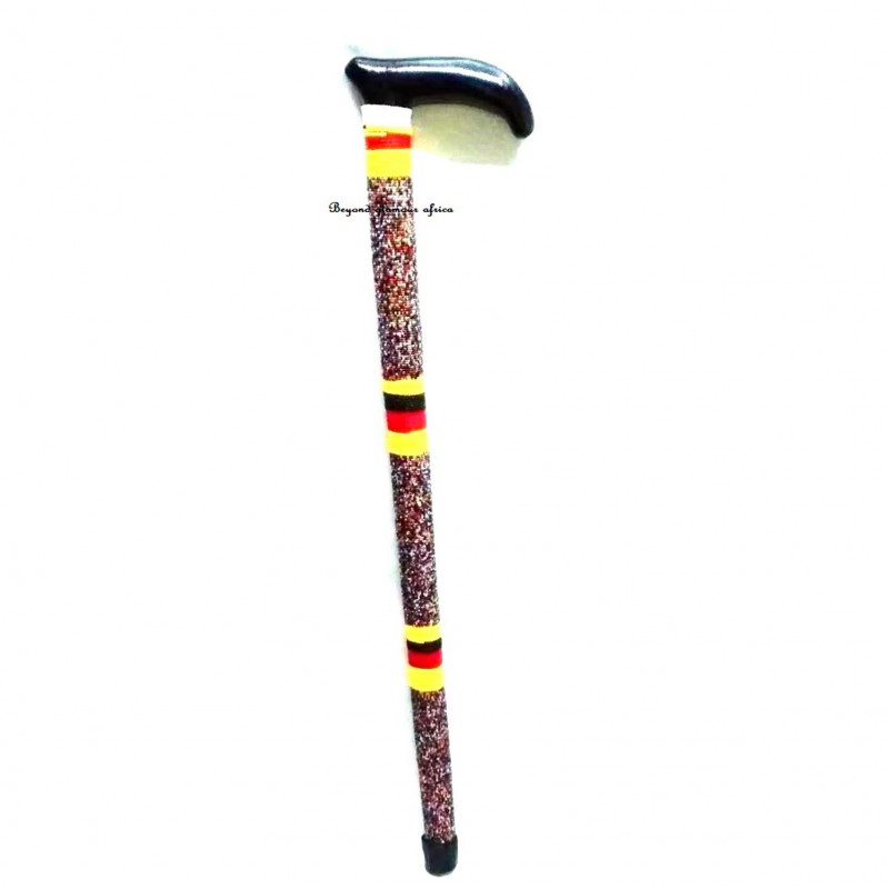 This walking cane is made of 100% natural wood and is carefully handcrafted to preserve its natural beauty. Every piece is individually cut, dried, sanded and then sprayed with a clear coating to be shinny and weatherproof. .