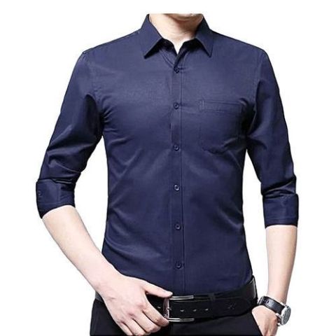 Fashion Slim Fit Official Long Sleeved Shirt - Dark Blue Small