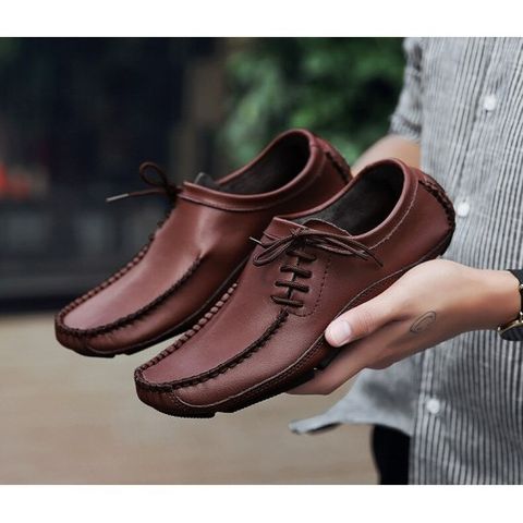 Genuine Leather Stylish Lace-up Rubber Sole Men Loafer Shoes