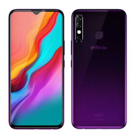 Some design features of Infinix Hot 8 that you will notice straight away include these, that camera(s) set up on be top left corner of the back and the dew drop display on the front. These two will not escape your notice. It will be your joy to hear that the way these two have been pulled adds to the attractive disposition of this plastic build cyan, purple, grey or black smartphone.