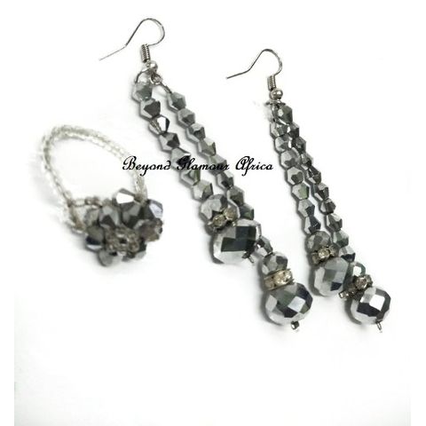 Ladies Grey Crystal Jewelry Set